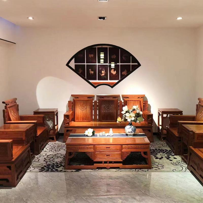 Ang Hongmushijia ay isang propesyonal na pinuno ng tagagawa ng China Chinese Style Corner Sofa. Ang headrest ng Chinese Style Corner Sofa ay gumagamit ng disenyo ng opisyal na sumbrero ng panahon ng Tatlong Kaharian, na nangangahulugan na ang opisyal na karera ay maunlad at maayos ang negosyo. Ang backrest ay pinalamutian ng larawang inukit ng four-season auspicious cloud, na nangangahulugan na ang apat na panahon ay masagana. Ang armrest ay binibigyan ng tansong barya, na nangangahulugan na ang kayamanan ay nasa iyong mga kamay. Ang base ay dinisenyo gamit ang lintel, na sumisimbolo sa katayuan ng may-ari.